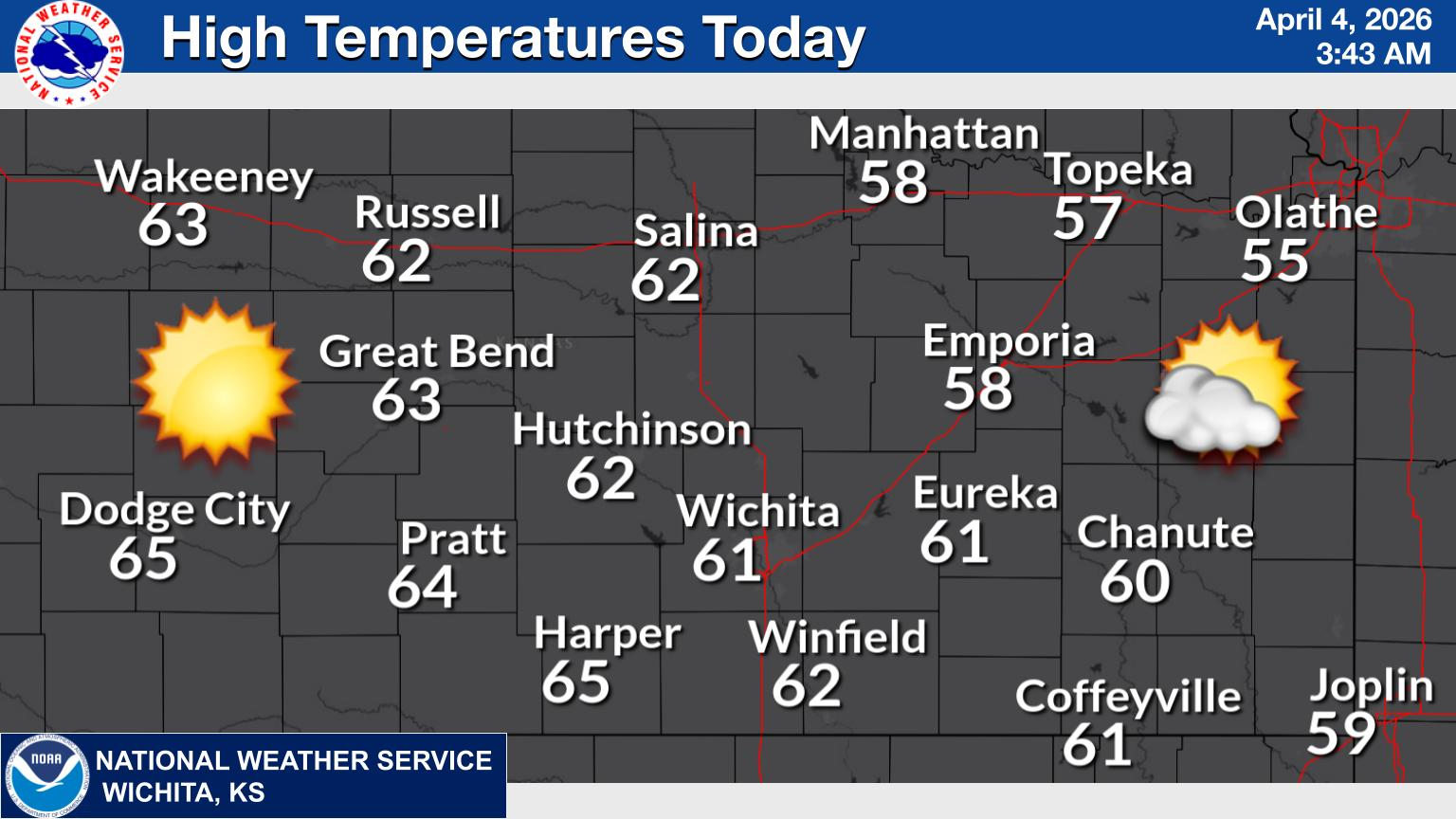 | Today will be cooler with highs generally in the low 60s with plenty of sunshine by this afternoon. |