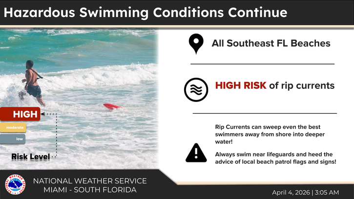 | High risk of rip currents continues through the weekend for the Atlantic beaches. |