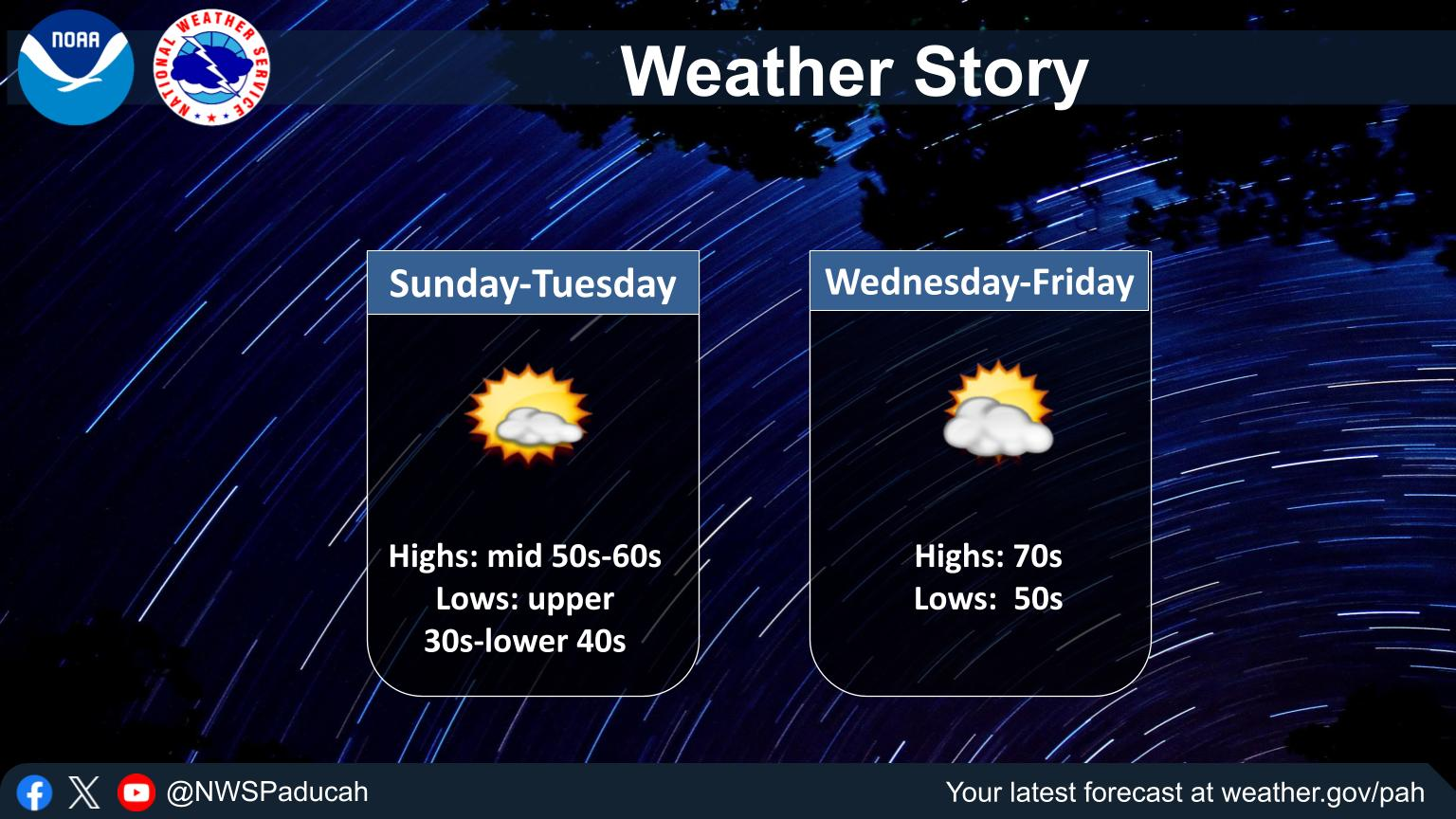| A pleasant and mostly dry spring week is in store with high pressure becoming the dominant weather influence. A small chance of rain begins to enter the forecast toward the end of the week. |